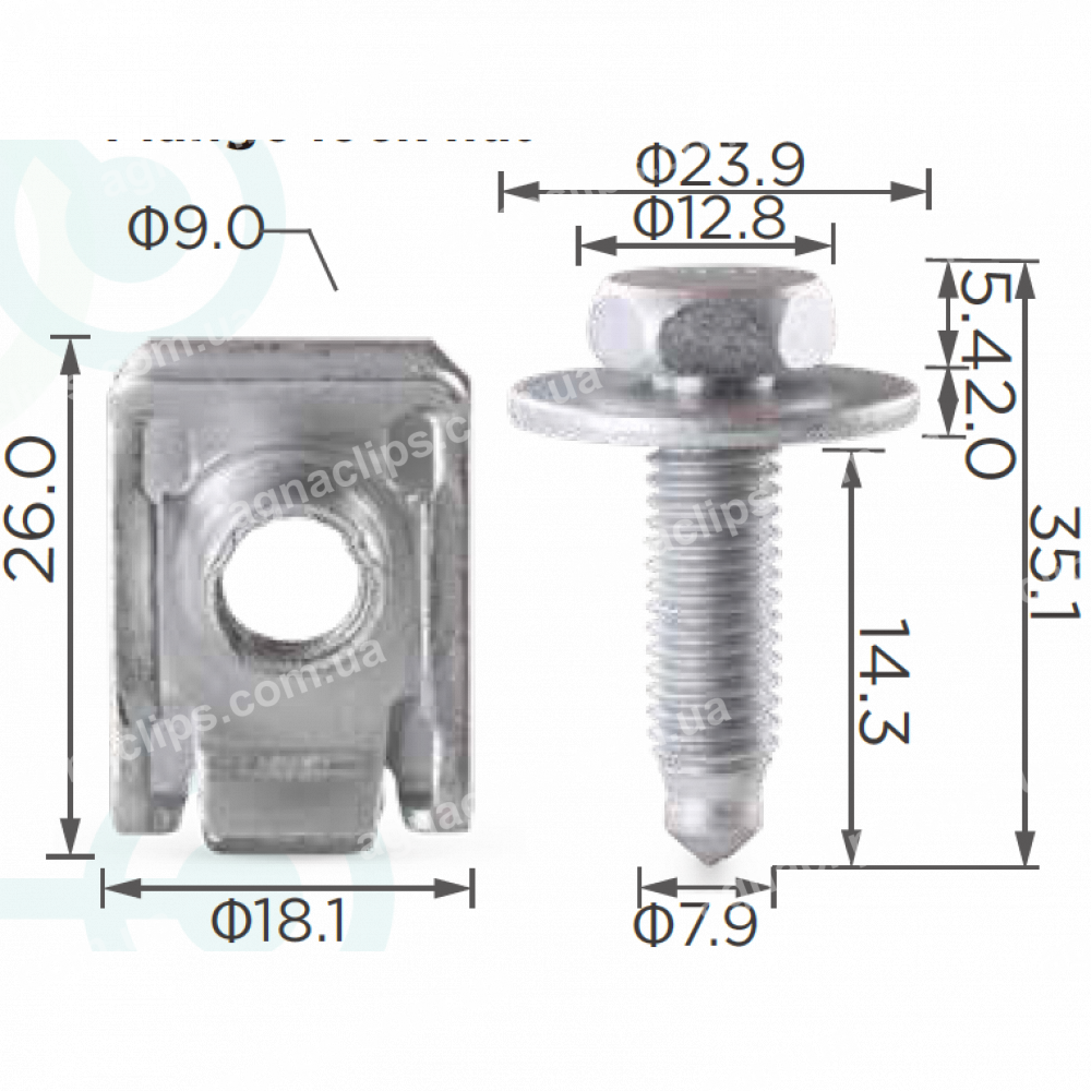Комплект металевий болт M8x14.3+скоба 18x26mm